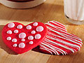 To make striped Valentine hearts, transfer half of the melted chocolate to a disposable pastry bag, twist the end closed, and using scissors, snip a very small opening in the tip. Starting at the bottom of the cookie, apply gentle pressure to the pastry bag and drizzle lines of chocolate back and forth over the cookie, moving up as the chocolate flows. Allow chocolate to set before eating or packaging.