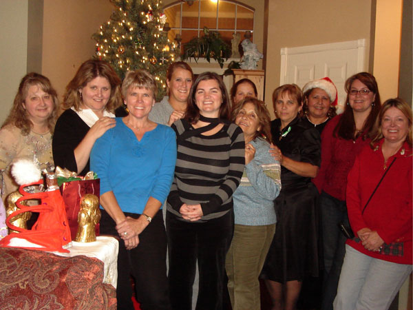 (Left to Right) Cindy, Linda, Marcy, Robin, Theresa, ChaCha, Gay (behind ChaCha), Cheryl, Vilma, Rochelle, & Annie. (Jody was unable to attend the Christmas party.)