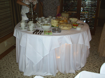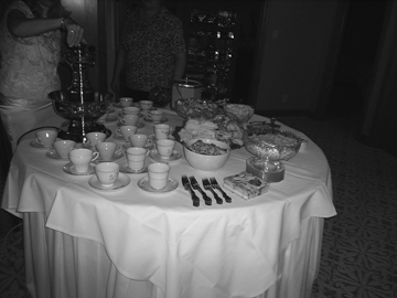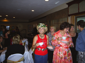 The party favor was a tea cup and saucer. I had my sister and daughter from Alabama go to a flee market and mail 20 to me.....The tea of choice for the night was Long Island Ice Tea.....