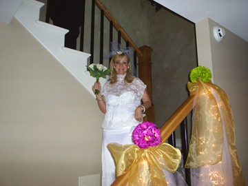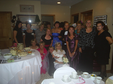 My downstairs was decorated with lights, white table cloths on all tables, white chair covers with gold ribbon bows tied on the backs....The girls could not believe I did all this for them....